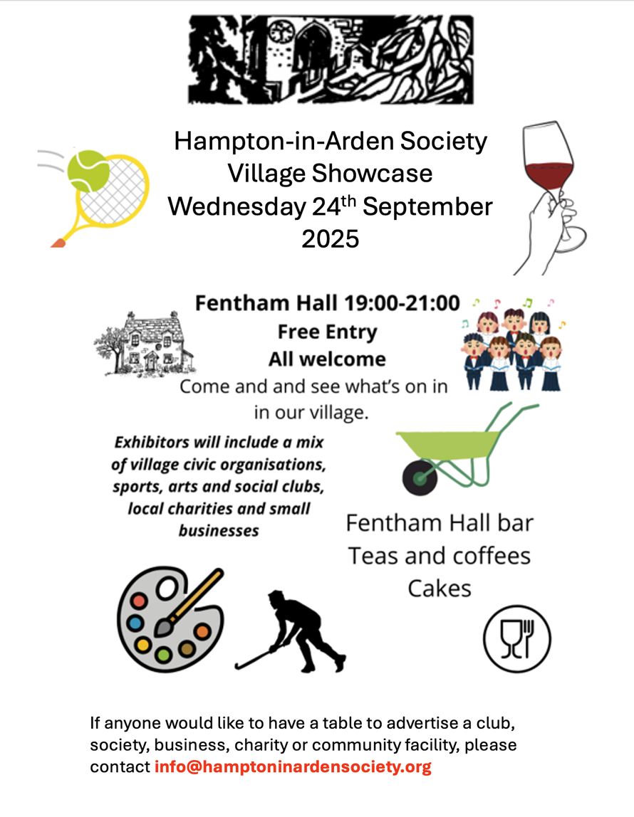 If you have any questions about the Hampton-in-Arden Society, or this website, please contact us on info@hamptoninardensociety.org